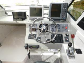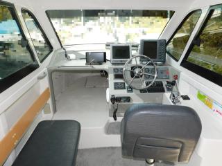 コックピットは広くワイドなフロントウインドウと低めに設定されたコンソールパネルにより、航海計器なども低く収まり、操船時の視界が確保されております。