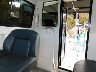 このクラス最大の広さを持ったキャビンは、レザー、カーペットを使用した落ち着いた雰囲気を持つもので、防音二重フロア、ルーフトップエアコンを装備しておりますので静かで快適な空間です。