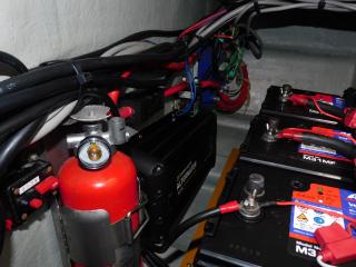 バッテリーはツインシステムで130F51が4個装備され、更にミンコタ用ディープサイクルバッテリーM31MFが3個、バッテリーチャージャーも装備、充電状況も充分でエンジン始動を含め良好です。