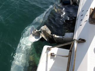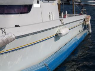 1993年進水です、丁寧に管理されていましたのでハルなども良好な状態です、係留時は船底に汚れが付かないように船底シートをつけています、ドライブも保護しています。