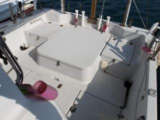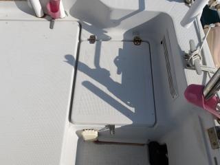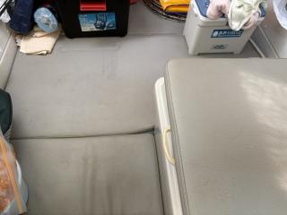 エンジンハッチもテーブル代わりにもなり、座って釣りをするにも丁度良い高さです。