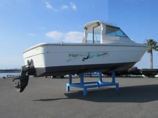 ヤンマーのフィッシングボートの人気種トップランJ「EF25Z」です。リアドア付きのセミウォークアラウンド艇で1998年進水ですが未だに人気は衰えない人気艇です。