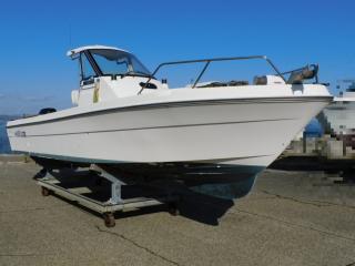 こちらの艇はベイエリアでのフィッシングに最適で、走行性、安定性に優れ、ウォークアラウンド、フラットなアフトデッキの手頃なサイズのフィッシングボート、ニッサン ジョイフィッシャー23 ハードトップリミテッド(2007年式)です。