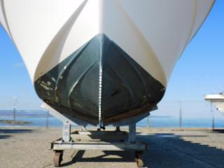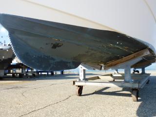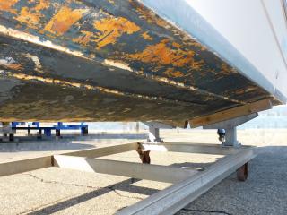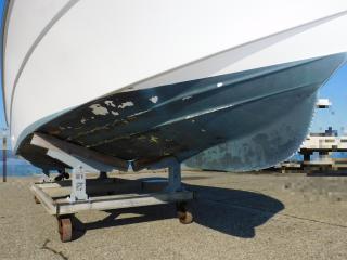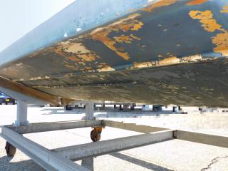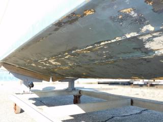 上架保管しておりますが以前に船底塗装が施されており、現状では塗装剥がれが見られます。