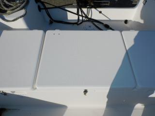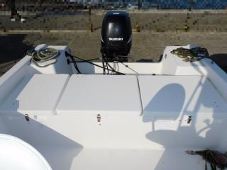 アフトデッキも2~3名で釣り出来る広さがあり、こちらもトランサムのストレージを釣座として活用でき使い勝手が良好です。