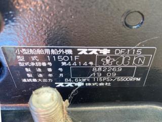 船外機はスズキ 4ストロークガソリン DF115 (11501F) 115馬力が搭載されております。