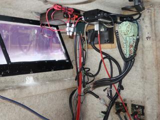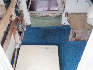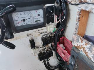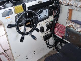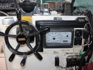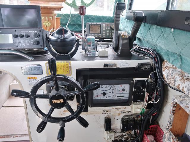 ◆操船部には後方スライドドアからのみアクセス可能です。操船部にはGPSプロッター魚探、GPSナビゲーター、オートパイロットなどが備わっています。また、漁業無線も装備していますが、現状では漁船登録を抹消していますので法的には現在使用できません。なお、この船を漁業者さんが購入されて漁船登録をされた場合、この無線機が改めて開局できるかどうかは不明です。(総務省に問い合わせてスプリアスの確認が必要です。必要でございましたら当方にお申し付け下さい。)