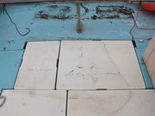 ◆いわゆるブラケット船で、船底にはシューピースが付いています。エンジンは現在ヤマハMD730KUHが搭載されていますが、年式から推測しますとオリジナルのエンジンから本機に載せ替えられていらっしゃると思われます。