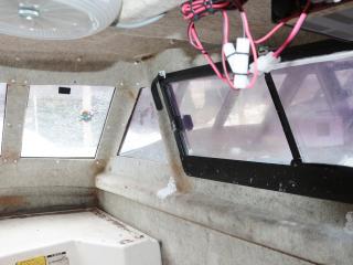 ◆操船部は明るく両側の窓はスライド式です。またフロントガラスは回転窓仕様です。