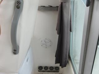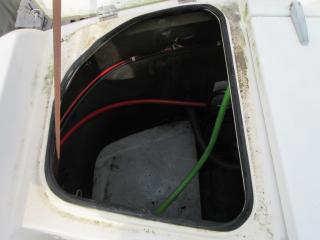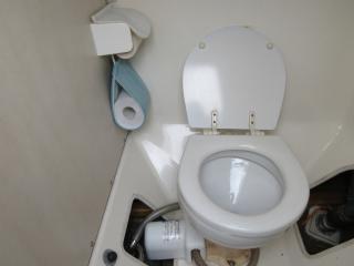 右舷側ハンドルの裏側には電動の個室マリントイレが有ります。