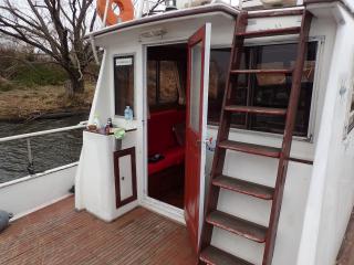 ◯船内操船席でも操船が行えます。またすぐ横にサイドドアがありますので、少ない人数で離着岸でも使い勝手が良さそうです。