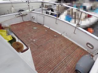 ◯ バウ、サイド、アフトデッキの木部は、整備を施せば綺麗になりそうです。