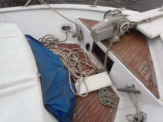 ◯船首側にはアンカーローラーが装備されています。また、アンカーローブは、青い袋に収納する様です。
