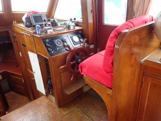 ご紹介の船は、1991年式(平成3年式)のKONG&HALVORSON製造のアイランドジプシー32(32フィート)です。洗礼された飽きのこないクラシックなデザインが特徴で、サイズ的に取り回しが良く、高い船首と耐久性、快適な居住空間、そして効率的なディーゼルエンジンによるクルージングを楽しめ、実用的なレイアウトが高く評価された小型トロール船です。アイランドジプシー32は特に人気が際立っています。ご興味のある方は多いのかと思います。