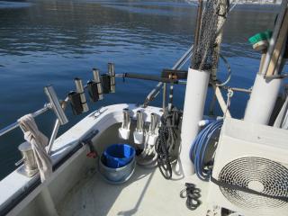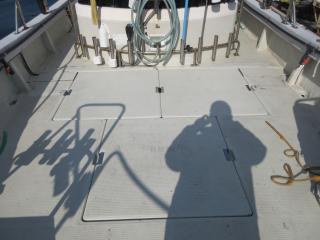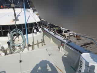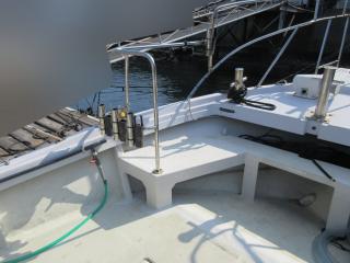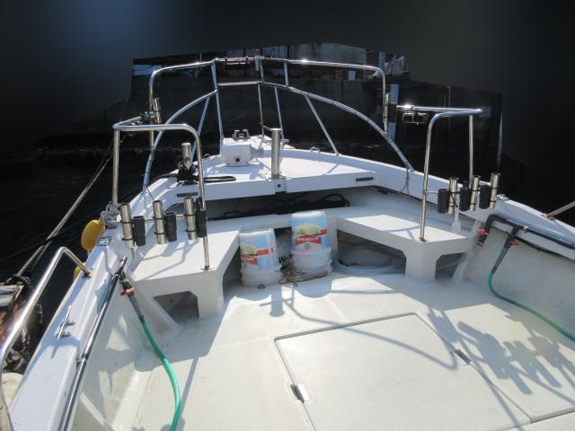 ◆フォアデッキ左右で釣りが出来るように手すりを取り付けています。