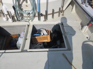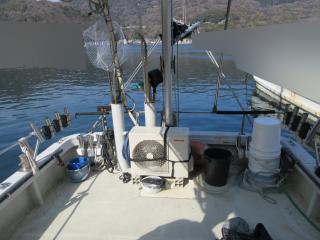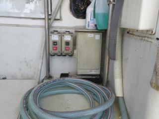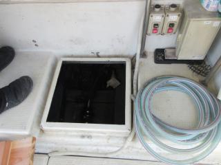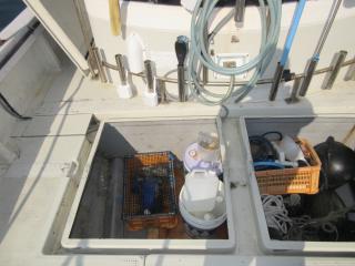サワフジ発電機、海水ポンプ、ホンデックス12c,メタハラ安定器、ソケット、インバーター4000W、無線、LEDライト2灯、サンシンサーチライト、ロッドホルダー。