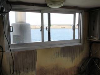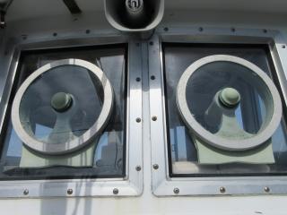 キャビン内の両サイドはスライド窓です。フロントガラスには旋回窓が有る為、悪天でも安心です。