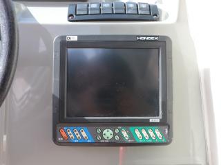 ◆コクピットにはHONDEXの8.4インチGPS魚探「HE-82-Di」が備わっています。取材当日はこのGPS魚探、インパネ計器類等を含め動作確認をしましたが特に問題は無さそうでした。