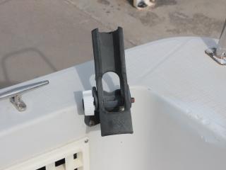 ◆バウには電動アンカーリールが装備されており、バウスプリット先端には三方ローラーも付いています。なお、バウレールも良好です。