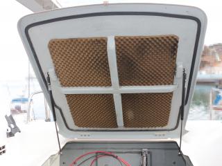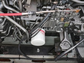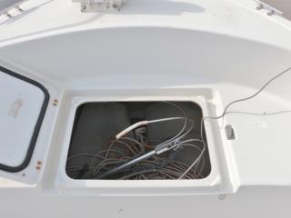 ◆エンジンリモコンはダブルレバー式で、操舵は油圧です。ヘルムハンドルは軽く動き、ヘルムポンプ軸からのオイル漏れなども見受けられませんでした。