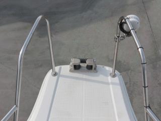 ◆デッキ面、サブタも硬く良好です。また、トランサムには両舷にはステップも備わっており、右舷側にはラダーもついていますので、万が一の落水時にも水面からのアクセスが容易です。
