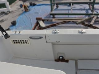 ◆キャビン・デッキ全体を見ても、航行や釣りに大きく支障が出るような割れや損傷などは無いように見受けられました。デッキも硬く、ノンスリップの異常摩耗なども無いように見受けられました。