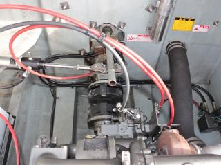 ◆エンジンはヤンマーのインタークーラーターボ付き4気筒ディーゼルエンジン、4JH3-HTZ1を搭載しています。検査手帳に記載されている連続最大出力は85PS/3700rpmです。取材時のエンジンアワーは約3657時間でした。