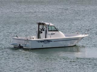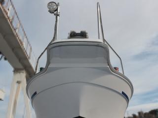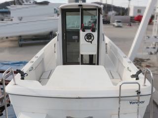 ◆艇は平成13年5月進水のヤンマーFX24BZⅡ-IS(24フィート)です。いわゆるウォークアラウンド艇で、リアドア付きなので冬季も快適な釣行が楽しめそうです。また、バウ及びアフトデッキにも純正レールが付いており、トランサムには両舷にステップが装備され、右舷側にはラダーも付いていますので、海上からのアクセスも容易です。