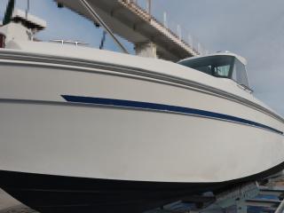 ◆船体は船齢なりの日焼けや経年劣化、細かい傷などがハルやガンネルに見受けられますが、たちまち航行に大きな影響があるような損傷は無いように見受けられました。