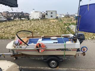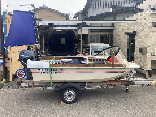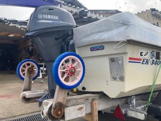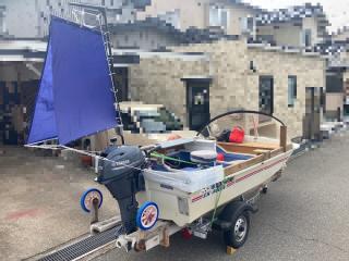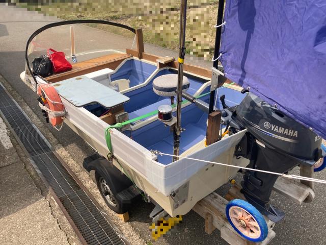 ヤマハ4ストローク船外機(15馬力)とSUNTREXのボートトレーラー付きでの販売です。