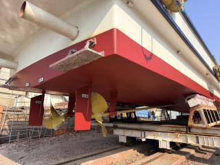 エンジンは三菱のS6B3ーMTK2L 最大馬力650馬力が2基掛けになっており油圧バウスラスター付ですので操船も扱いやすそうです。