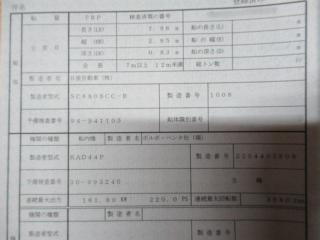 | 検査手帳馬力 | 220馬力 / 3680rpm(回転数) |