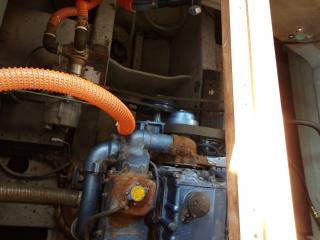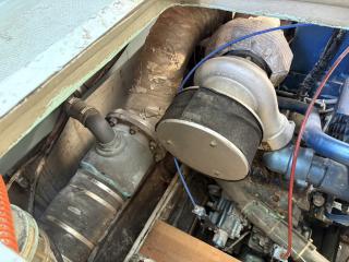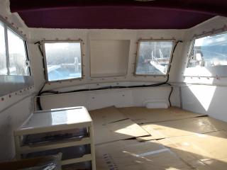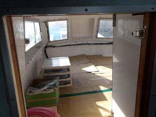 キャビン内のエンジンルームとの境目に新たにアルミ扉を増設されています。エンジン上部の木製板も新設されています。