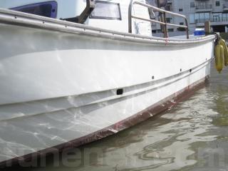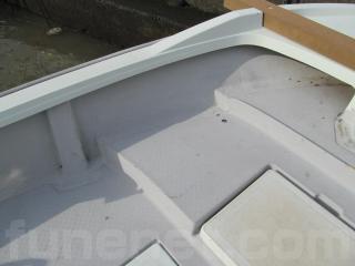 通常の使用時についたと思われる、スレや小傷、塗装の剥がれなどもありますが、年式の古い艇によくありがちな、表面がブアブアしているところはありませんでした。
