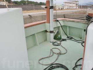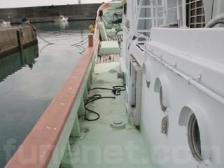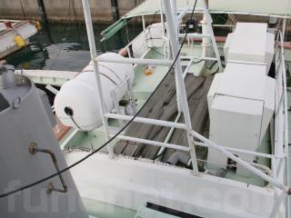 Please note that it has been docked since around 2004 and has never been in operation, so restoration will require a large amount of money. The hull is made by Ehime Plastic Shipyard in Uwajima City, Ehime Prefecture, which has a reputation for manufacturing tuna boats and skipjack boats.