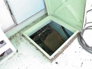 取材時は係留状態で船底の確認はできませんでした。長期間動かしていませんので、船底は掃除が必要です。