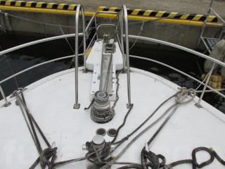 船体15.50mに、約1mのバウスプリットと、約1mのトランサムステップをたすと長さは17.50mありました。