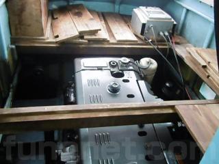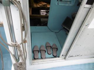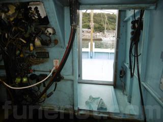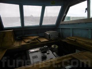 ブリッジ周りは綺麗に整理されていました、操舵席の下に魚探を設置されていて、外からも見やすくしていました、釣行に適しています。