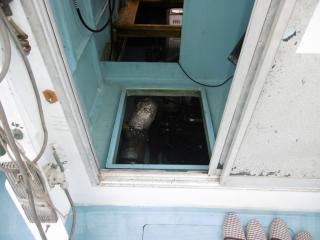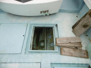 生けすのハッチが2間の内1間無く木で蓋をしています。