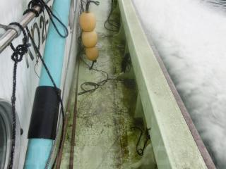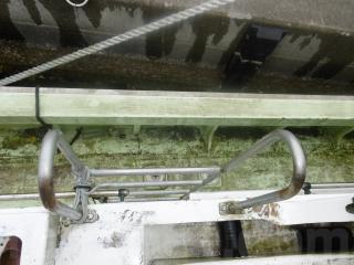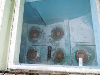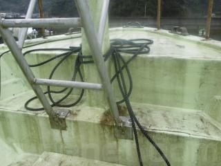 ◆活魚を運ぶ生けすはオーバーした排水を除くように細工をされています。