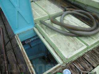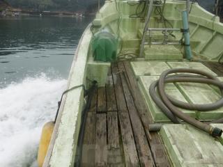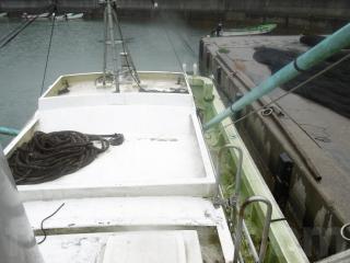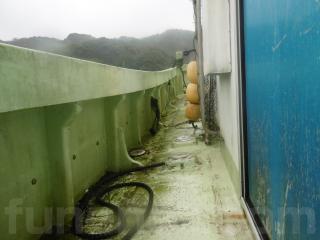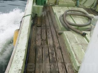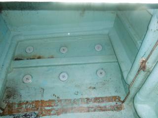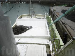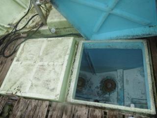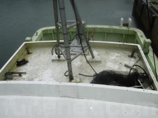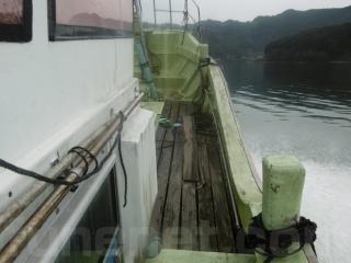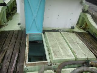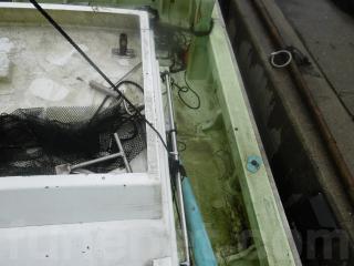 ◆フロントデッキは硬く良好です、生けすは3間あります、中仕切りを除けています、活魚を運んでいました。
