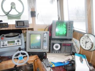 コクピット内は広く操船し易すいようです、各機器類も使用が便利なように取り付けて居ます、レーダー、GPSなども作動しました。