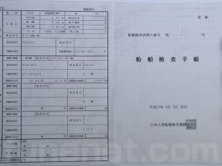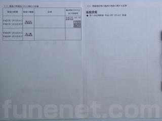 この艇の正確な情報をお伝えする為に船舶検査証書と検査手帳を個人情報を伏せた状態で掲載しています。