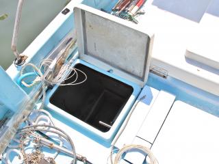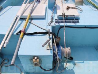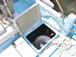 オモテへの移動はキャビン前のドアからも移動可能ですので、オモテで2~3名の釣りができそうです。電動アンカーウィンチも装備されており、アンカーロープも200m程度付属しています。また、オモテでスロットル操作も可能です。