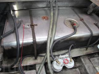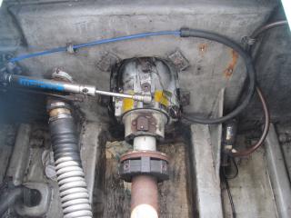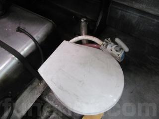 ステンレスの燃料タンク200Lの横に、手動式のマリントイレが設置されています。