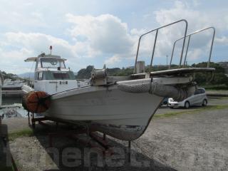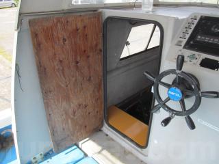 取材時は上架されていましたので、エンジン始動確認及び試乗をしていません。沖乗りでの状態や細かい所までは解りかねますので、ご見学の際にはご試乗頂き、全ての事項をご確認の上でご購入をお決め頂きますようお願い致します。