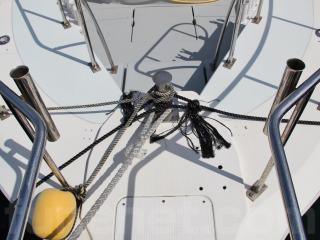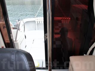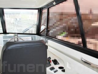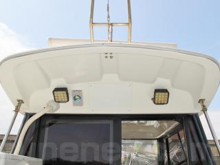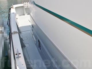 主要な艤装としては、前後に電動スラスター、レーダー、魚探、ハイバウレール、スパンカーなどです。なお、2ステーションですのでアフトデッキ(トモ)でも操船可能です。