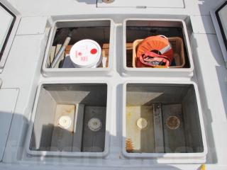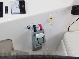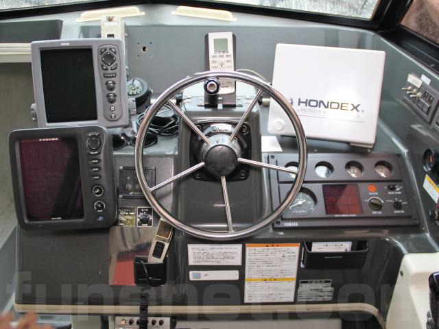 ヘルムハンドル廻りにはレーダー、魚探類がスマートに取り付けられていますので追加装備される場合でも具合が良さそうです。なお、写真No,2の右側に写っているGPS魚探は移設されるとの事ですので付属致しません。ご了承下さいませ。
