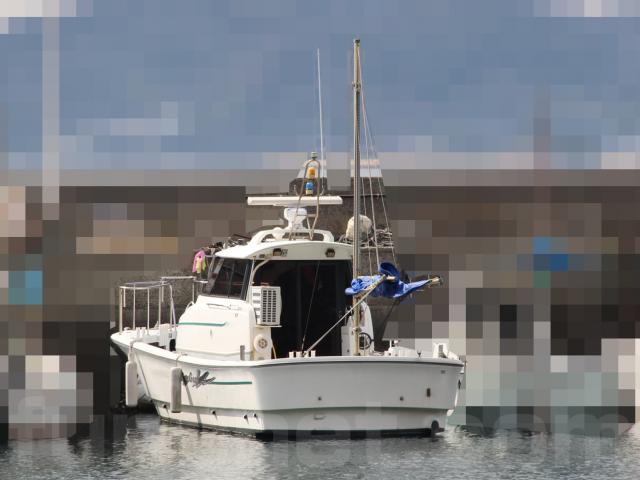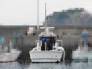 また、キャビンフロントガラスの前と両舷には船名が入っていますが、個人情報保護の為に画像編集をして消しています。
