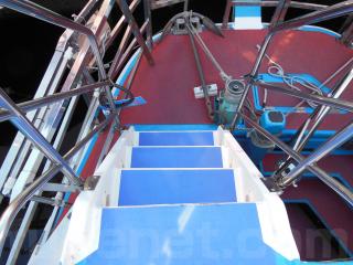 上部デッキに上がる階段があります。手すりなどの装備もあり、停船時にはお客様がデッキに上がることが出来ます。